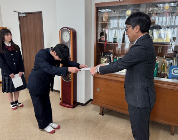 2025.11.06 後期生徒会認証式 令和7年11月6日(木)後期生徒会役員認証式が行われました。 校長先生から一人ひとりに認証書が手渡され、新たな責任と期待を胸に、後期生徒会が正式にスタートしました。 認証書を受け取った生徒たちの表情は引き締まり、同時にこれからの活動への意欲がいっそう高まった様子でした。 後期生徒会の皆さんの活躍に、期待しています!