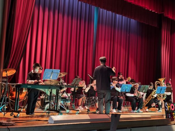 体育館では吹奏楽部が美しい音色で観客を魅了しました。