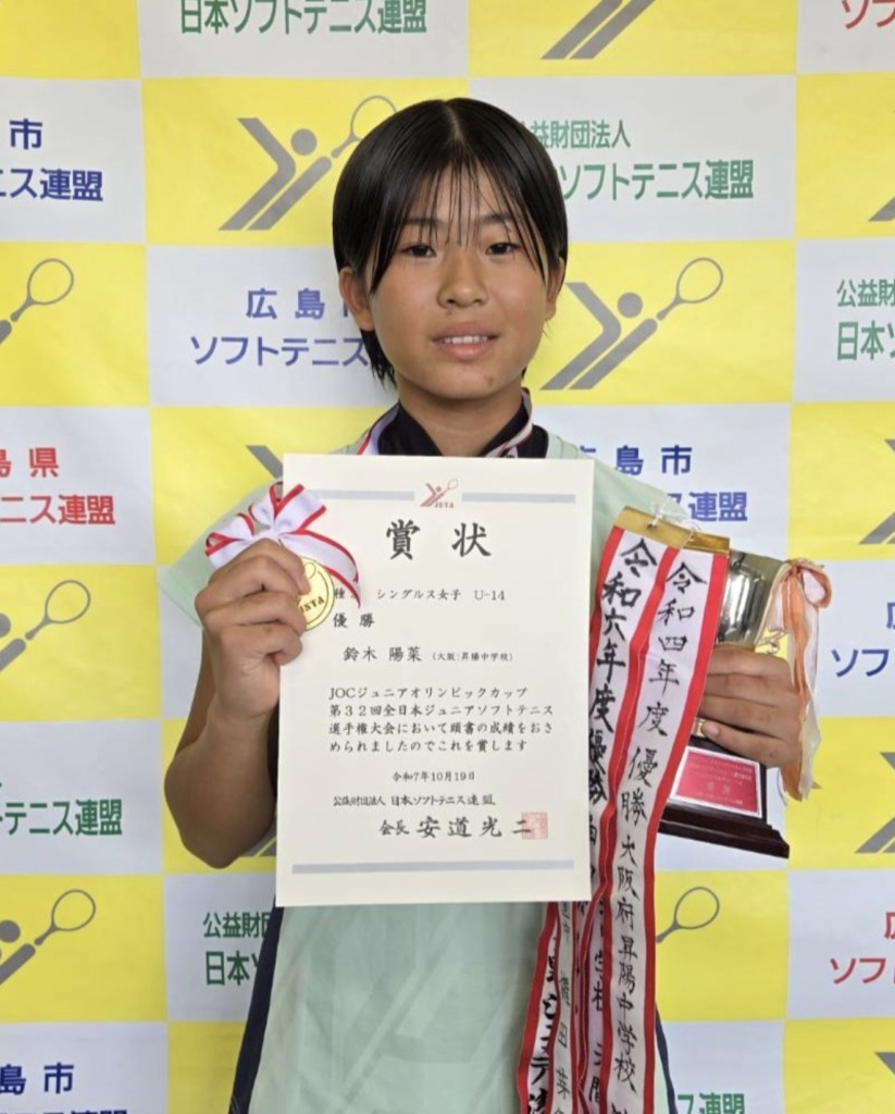 昇陽中学校ソフトテニス部は、女子U-14シングルスにおいて優勝・準優勝、女子U-14ダブルスにおいても入賞しました。(JOC杯では5度目の日本一となりました)