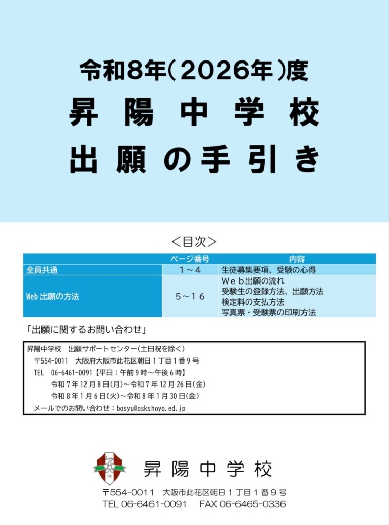 出願の手引きを「中学校募集要項」のページに掲載させていただきました。