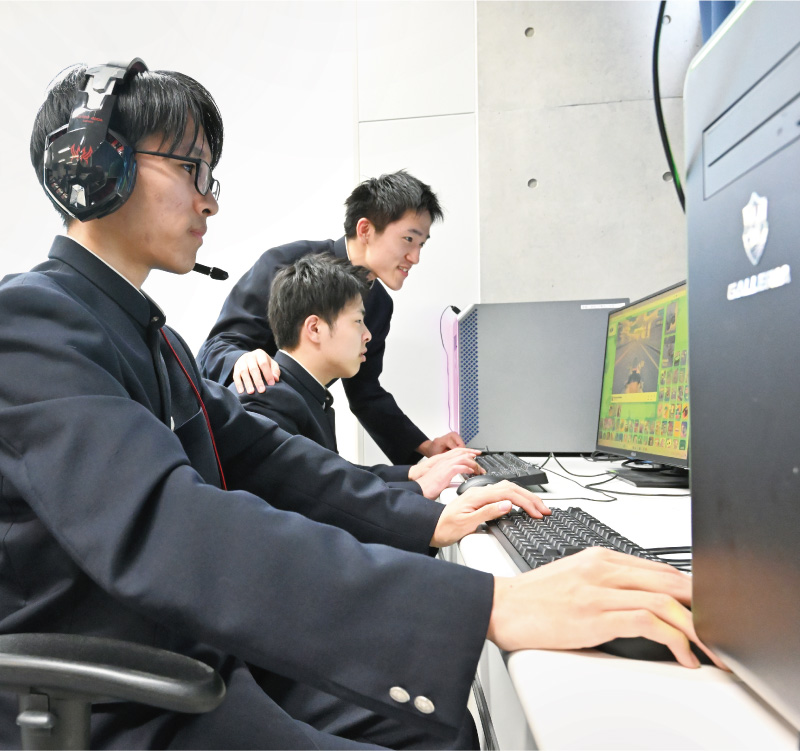 「ITフロンティアコース」では、最新パソコンを備えた「IT教室」に加え、新教室「ITラボ テックフロンティア」を設置します。3Dプリンタ、eスポーツ用コンソール10台(うちレーシングコックピット2台)、90インチ大型モニタなどの関連設備を導入。最先端を行く次世代型のIT授業を実施します。